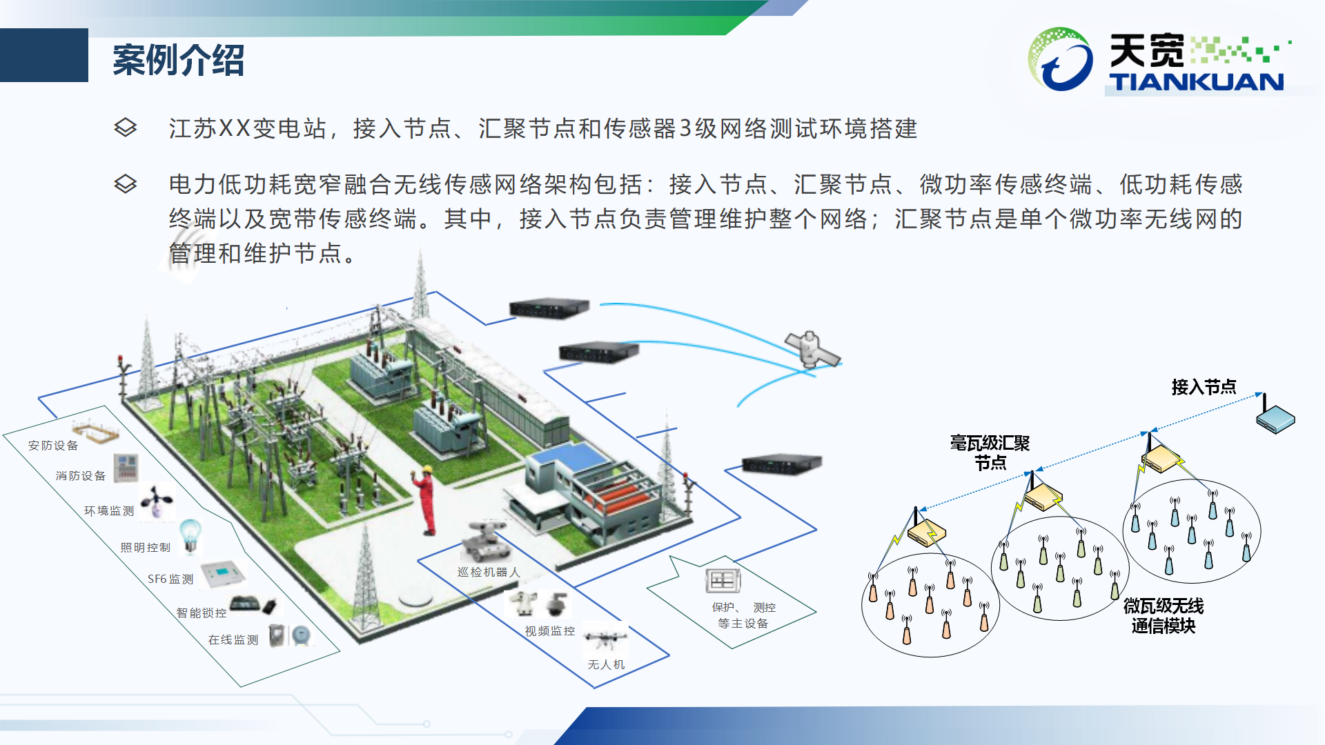 江蘇XX變電站通過接入節(jié)點(diǎn)、匯聚節(jié)點(diǎn)和傳感器3級(jí)網(wǎng)絡(luò)測(cè)試環(huán)境搭建。采用電力低功耗寬窄融合無線傳感網(wǎng)絡(luò)架構(gòu),包括:接入節(jié)點(diǎn)、匯聚節(jié)點(diǎn)、微功率傳感終端、低功耗傳感終端以及寬帶傳感終端,有效提升電力物聯(lián)網(wǎng)安全水平,確保電網(wǎng)安全運(yùn)行。