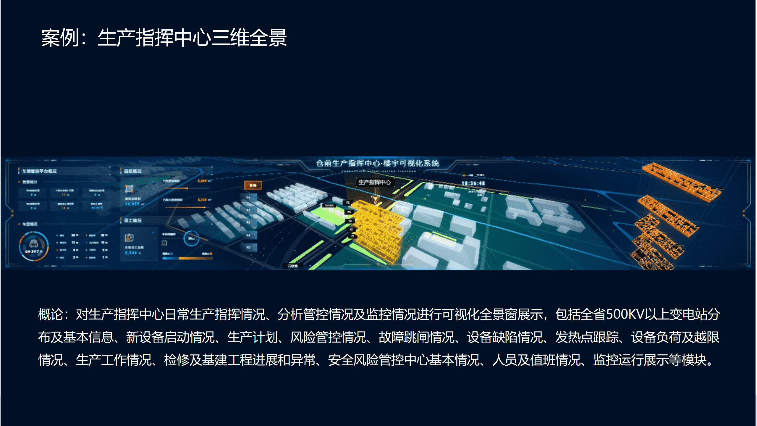 生產(chǎn)指揮中心項目通過深度挖掘全域電力數(shù)據(jù),結(jié)合各業(yè)務(wù)部門的場景,開展業(yè)務(wù)主題設(shè)計、數(shù)字化治理、數(shù)據(jù)匯聚融合分析,搭建“1+10+2”電力數(shù)字化經(jīng)營及改革工作體系,融合可視化全景窗展示系統(tǒng),將數(shù)字化主題的挖掘成果:全省500KV以上變電站分布及基本信息、新設(shè)備啟動情況、生產(chǎn)計劃、風(fēng)險管控情況、故障跳間情況、設(shè)備缺陷情況、發(fā)熱點跟蹤、設(shè)備負荷及越限情況、安全風(fēng)險管控中心基本情況、人員及值班情況、監(jiān)控運行等內(nèi)容進行展示,以供管理運營單位進行監(jiān)控、分析和有效管控。