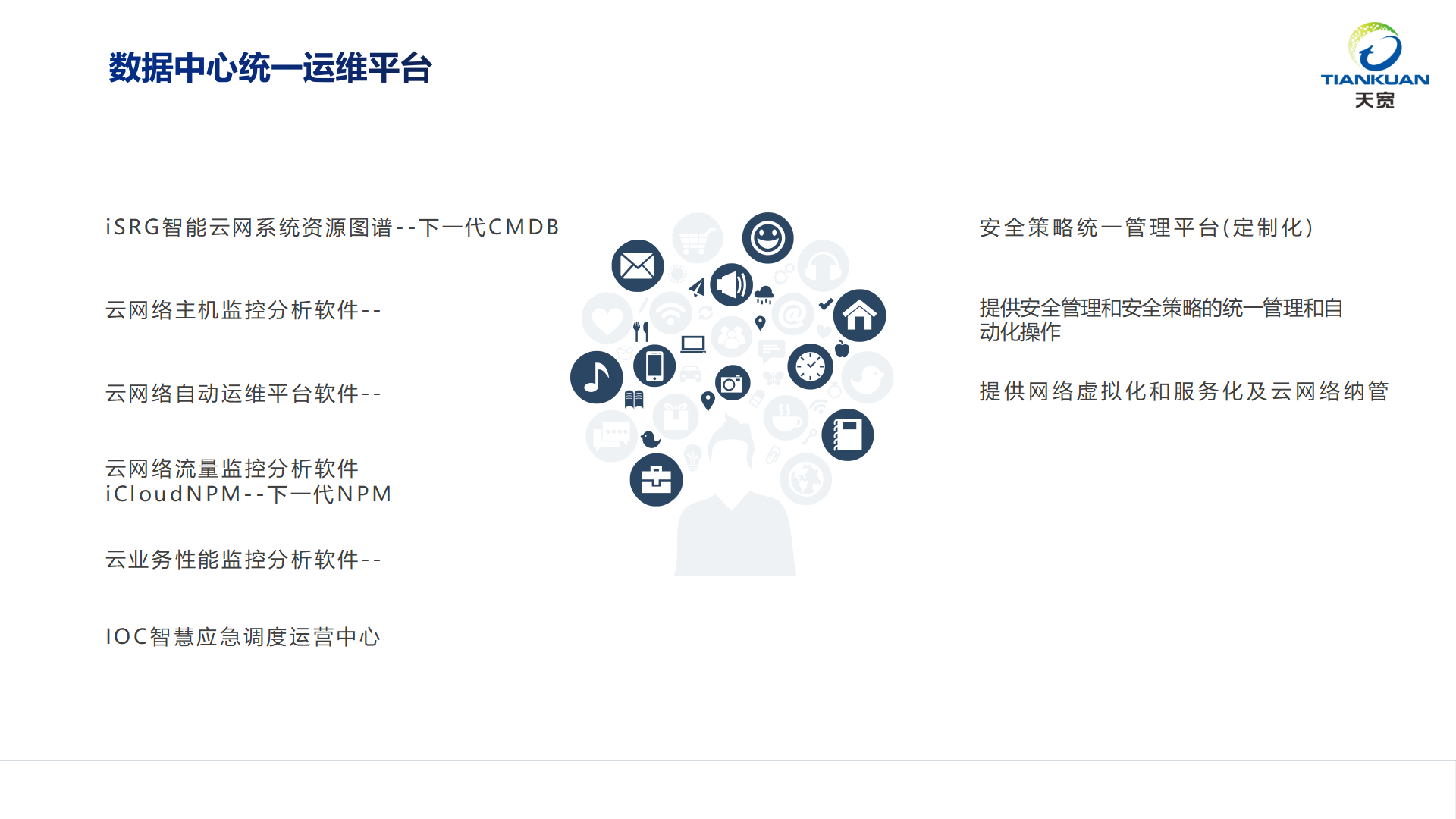 數(shù)據(jù)中心統(tǒng)一運維平臺是基于Snowburger 數(shù)字化運維平臺構(gòu)建的云網(wǎng)監(jiān)控/一體數(shù)據(jù)中心運維平臺,包括:云網(wǎng)監(jiān)控平臺、云網(wǎng)流量性能監(jiān)控系統(tǒng)、虛擬資源監(jiān)控調(diào)度平臺、運維可視化前臺及應用,支持云網(wǎng)的多層、分層、虛擬化資源(SDN)、策略和云網(wǎng)協(xié)議及拓撲,可對接多云和PaaS服務平臺,支持提供混合云虛擬資源的全生命周期管理和彈性伸縮部署,實現(xiàn)云網(wǎng)和傳統(tǒng)IT基礎設施,業(yè)務和軟件系統(tǒng)的統(tǒng)一運維和管理。